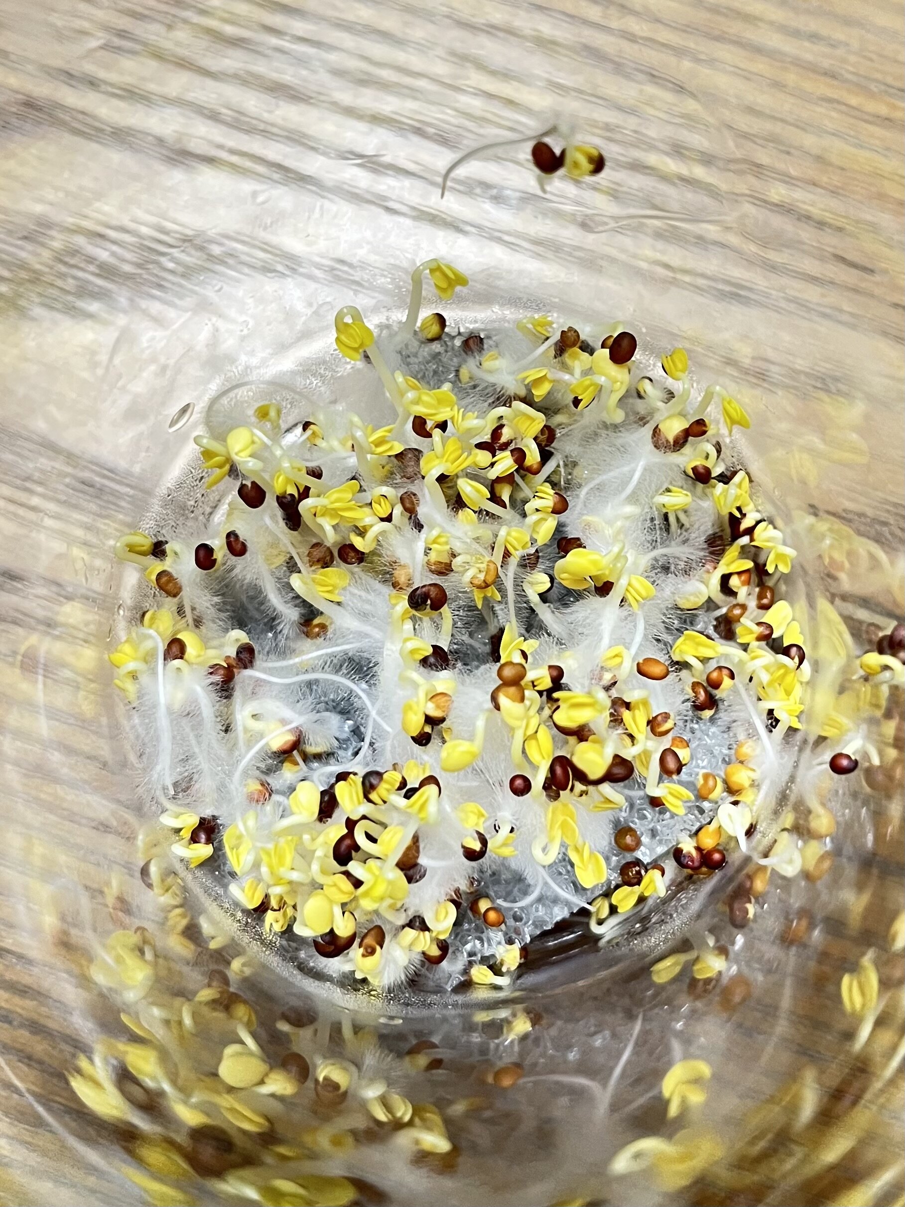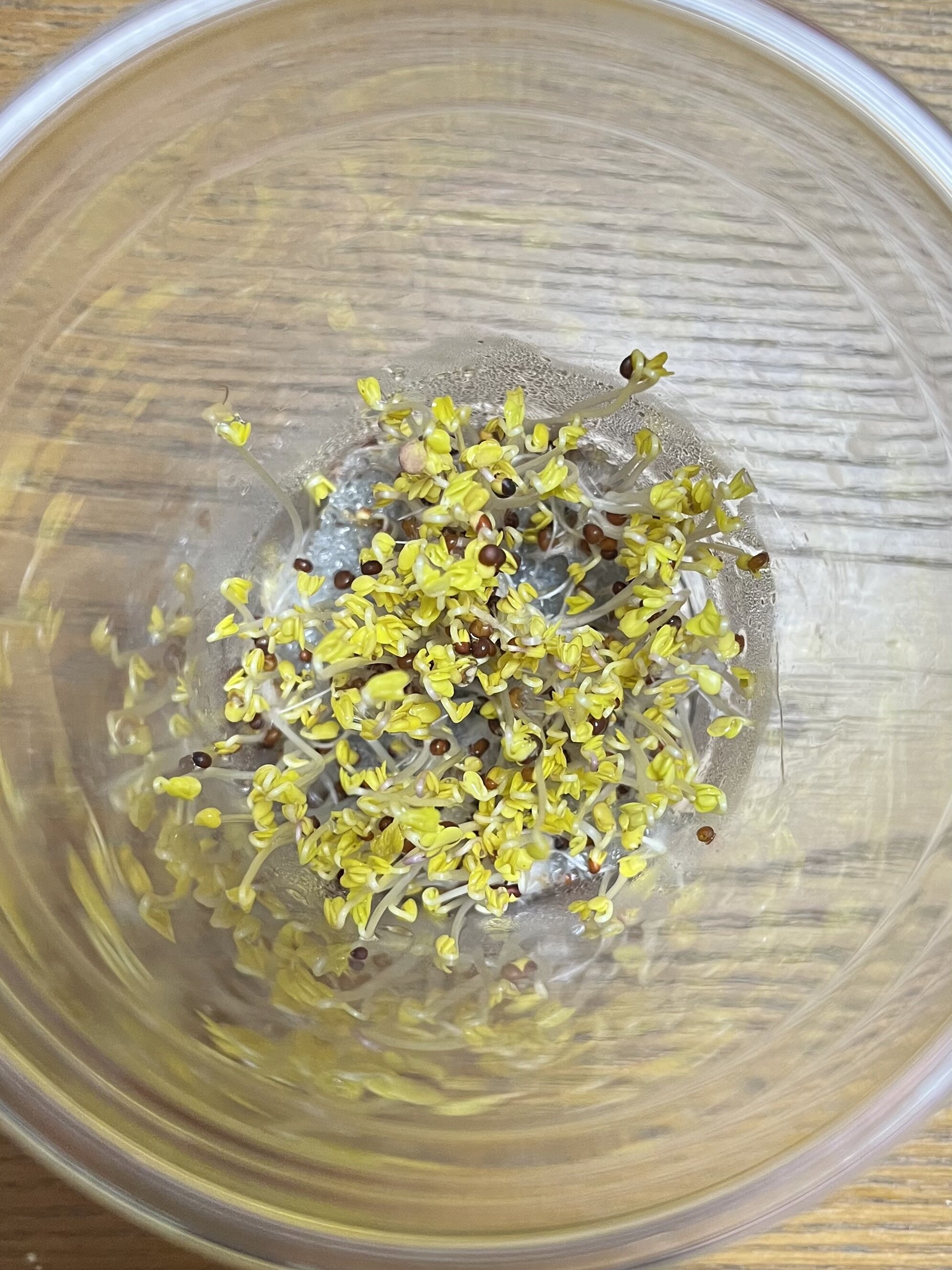 ブロッコリースプラウトの種をまいてから、カビの繁殖を防ぐため、毎日種を洗って水を換えました。それと同時に、撮影や観察も行いました。