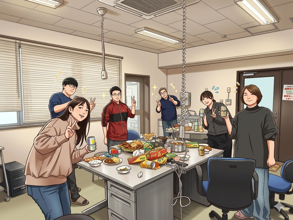その数日後、渡辺研の追いコンが開かれました。今回は、高田さんが色々作ってくれましたよ!どれも絶品のおいしさ、さすがです!