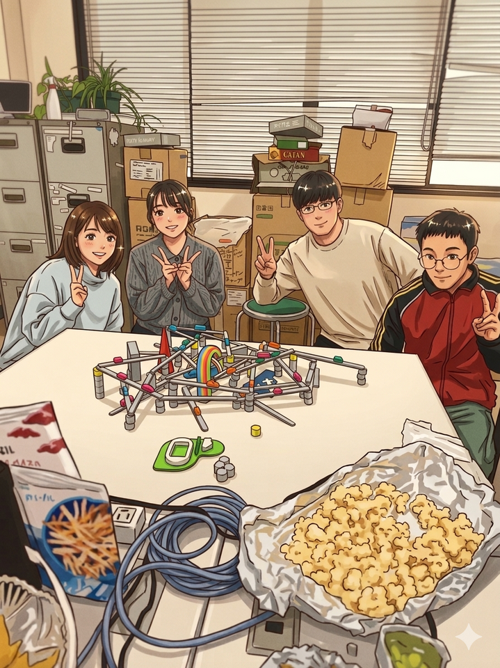 阿部くん厳選のボードゲームを何種類かやったんですが、下の写真はTOKYO HIGHWAYというゲームをやっている様子です。めっちゃ映えるゲーム!楽しい思い出ができました。